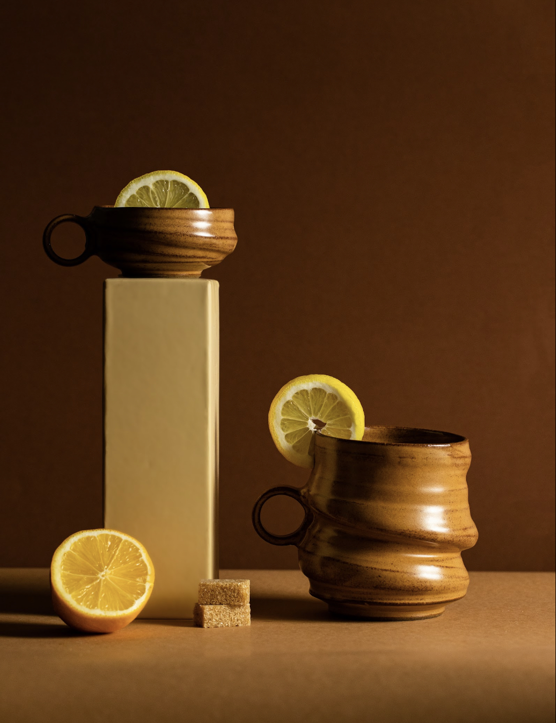 Seria CZARNA Z CYTRYNĄ to szkliwo w dotyku satynowe, lekko błyszczące, o odcieniu ciepłego brązu wpadającego w ciemny pomarańcz.
