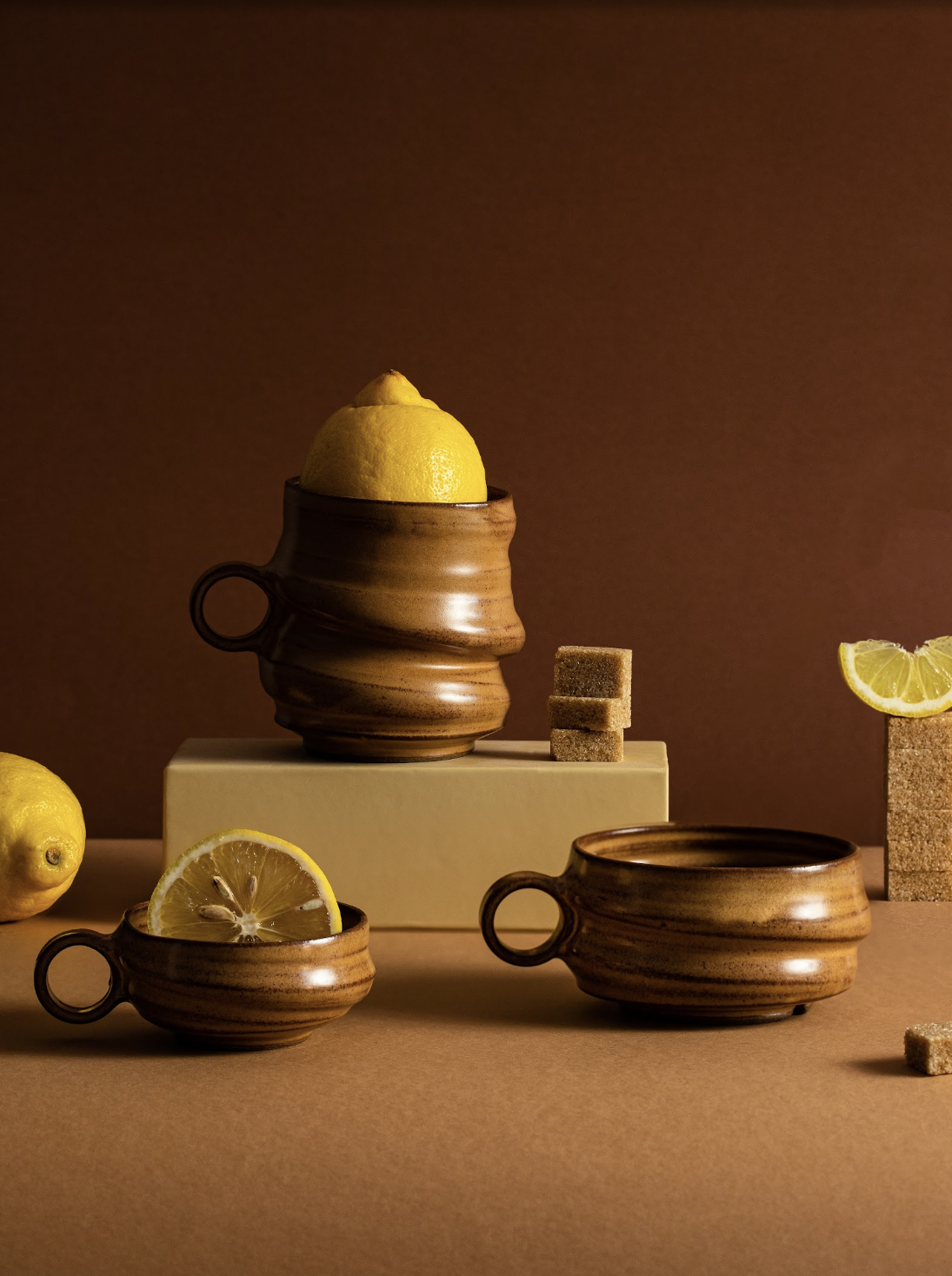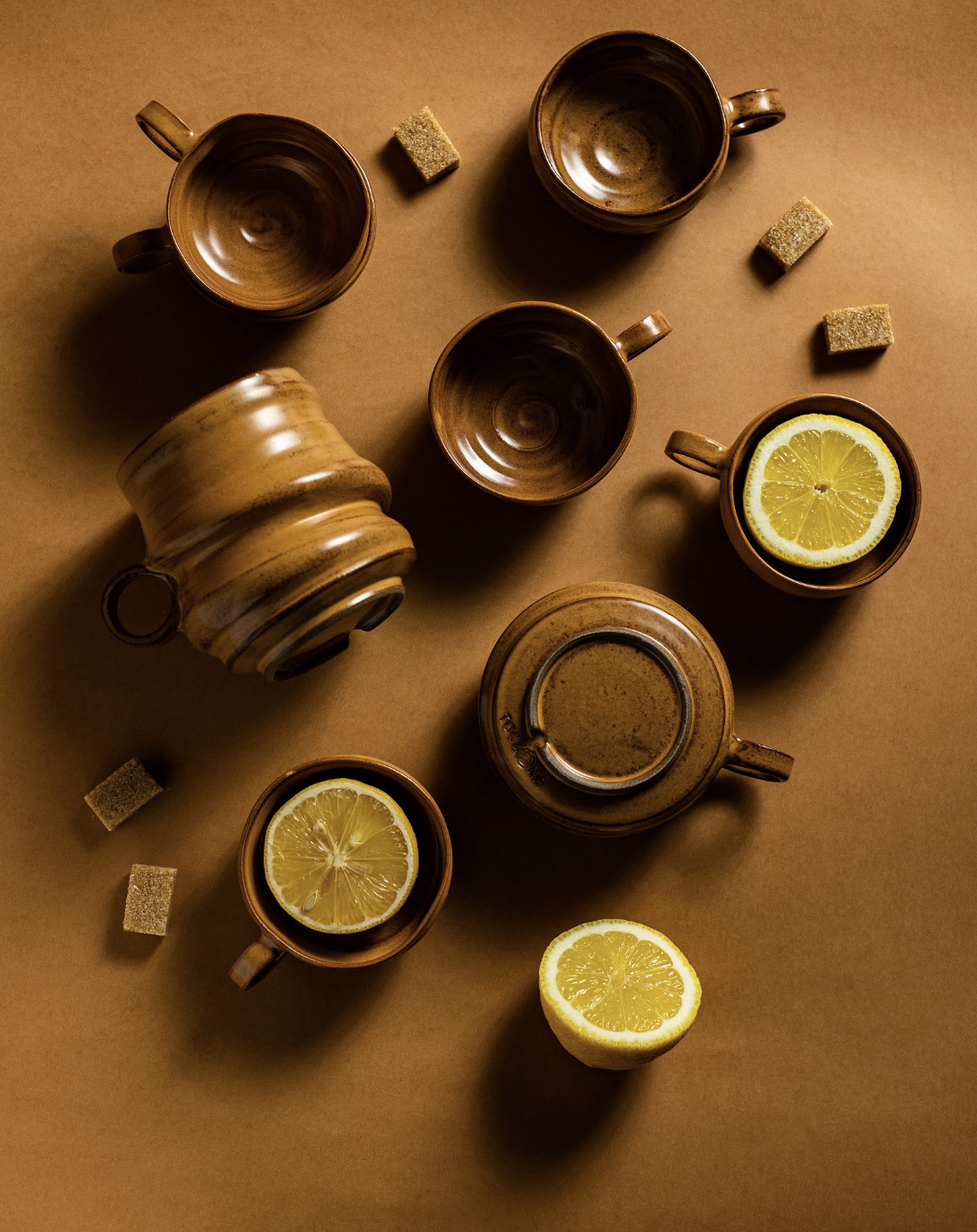 Seria CZARNA Z CYTRYNĄ to szkliwo w dotyku satynowe, lekko błyszczące, o odcieniu ciepłego brązu wpadającego w ciemny pomarańcz.